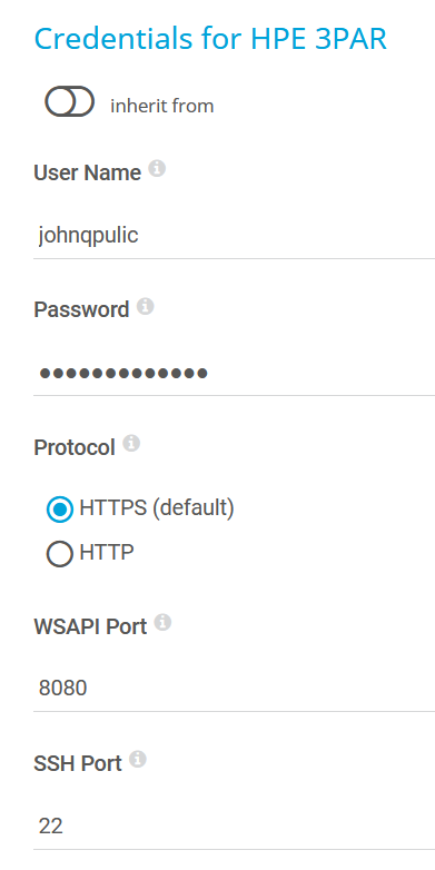 Where can I find the Web Services API (WSAPI) port for the connection to the HPE 3PAR system?